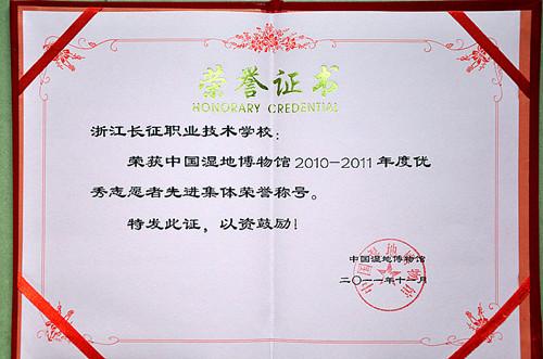 2011年11月13日上午,中国湿地博物馆在西溪国家湿地公园召开2010-2011学年表彰大会,在杭的4所高校受到了表彰,我院被评为优秀志愿者先进集体。